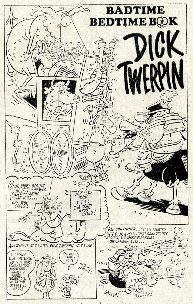 They used to prepare comics well before their cover date and Mr. Baxendale submitted as many as seven of the Badtime Bedtime Books before the release of the 1st issue of Monster FUN Comic. Here is the gallery of covers and bits of information which can be found in Mr. Baxendale’s book A VERY FUNNY BUSINESS: