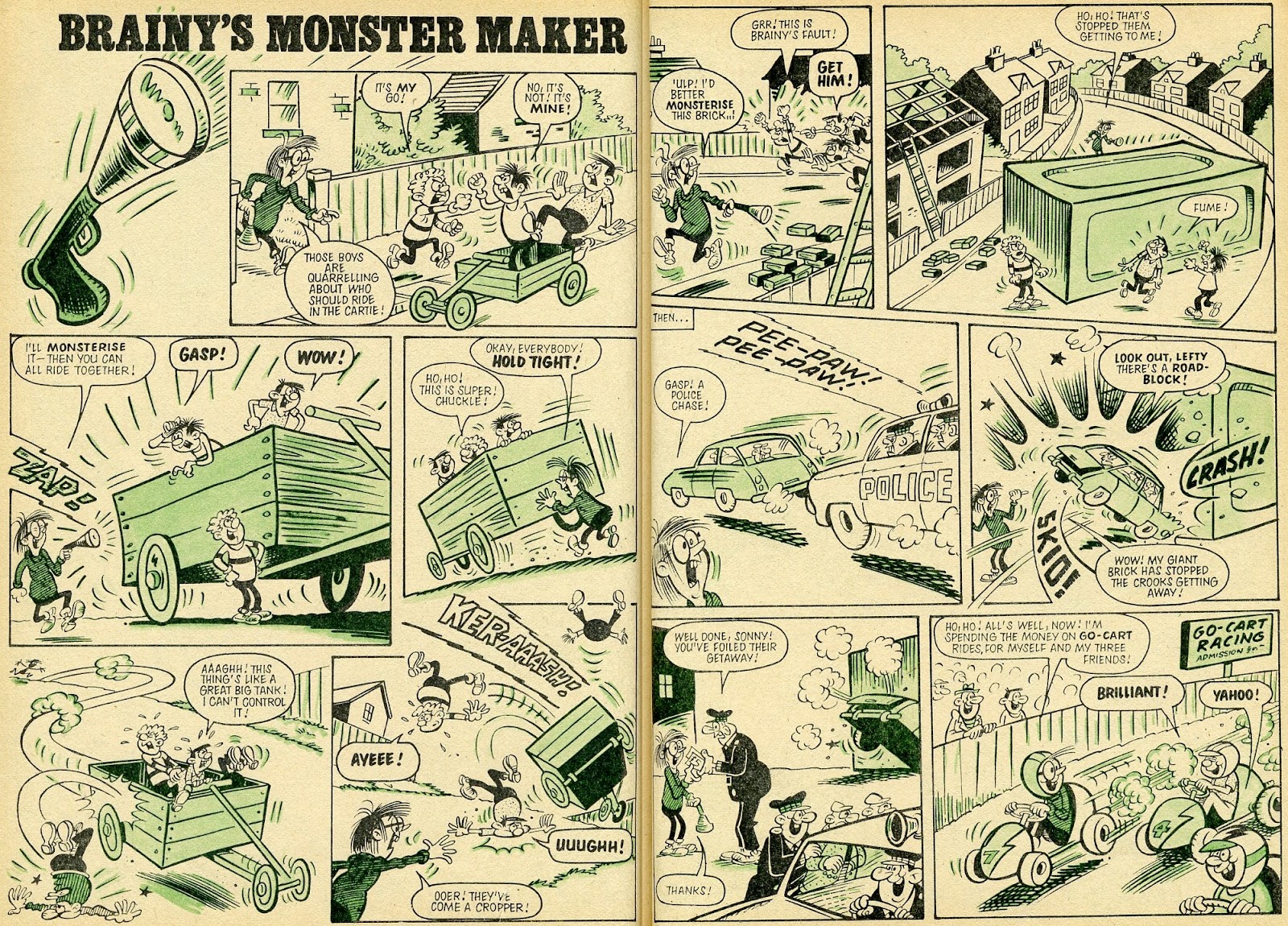 Geering), Terror TV (a 4-pager by Barrie Appleby), Brainy and His Monster Maker (a 2-pager by Tom Williams), Draculass